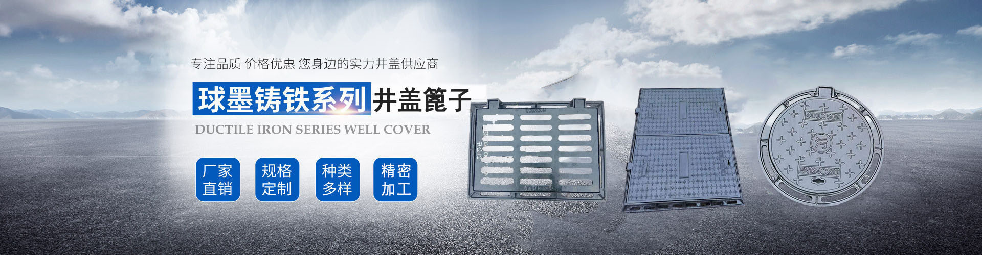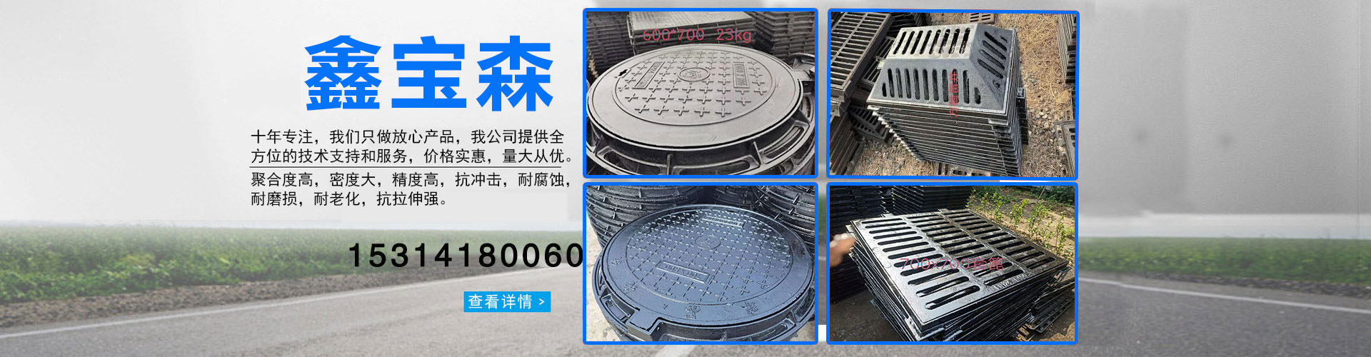 山東鑫寶森金屬制品有限公司位于美麗的江北水城聊城,主要經營各種規格球墨鑄鐵井蓋、球墨鑄鐵方井蓋、球墨鑄鐵箅子、球墨鑄鐵排水溝蓋板、球墨鑄鐵溢流井、球墨鑄鐵立式箅子、球墨鑄鐵橫截溝箅子、樹脂復合井蓋、樹脂復合箅子等產品,我公司產品質量優質,始終堅持和貫徹“質量是企業生存之本,為用戶提供滿足的產品和服務是我們永恒的追求”的質量方針。公司產品均符合國家標準(GB)、產品品種豐富、規格齊全,現已銷往全國各地,得到諸多客戶的好評。公司常備庫存量充足,品種規格齊全。本著薄利多銷,質量可靠的銷售原則,讓客戶買的放心,用的舒心!誠信、專業、 高效是我們的服務宗旨,我們將竭誠為新老客戶提供過硬的產品和優質的服務, 歡…